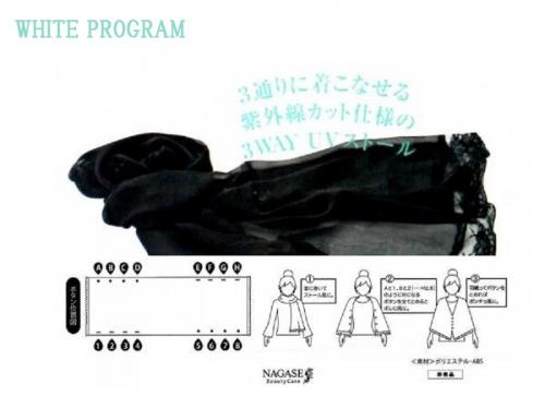 ★美白ケァというと、夏だけ集中して行う方が多いかもしれませんが、紫外線は夏だけではなく、一年中降り注いでいます。透明感のあるお肌をキープするなら、年間を通じて美白効果のある化粧品を使いましょう。「ホワイトプログラムブライトローション」を併用いただくことで、美白効果を半減させる乾燥を防ぎ、たっぷりのうるおいを届け、日中の紫外線ダメージにアプローチできます。また、疲れた夏肌をリフレッシュさせ、日中受けたお肌のほてりを鎮める「ホワイトプログラムマスク」もオススメします。ホワイトプログラムシリーズが深・美白を実現させます。